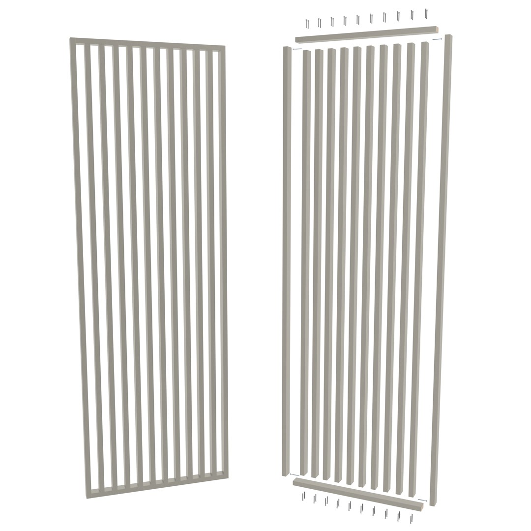 Grade metálica com barras verticais cinza, montada e desmontada